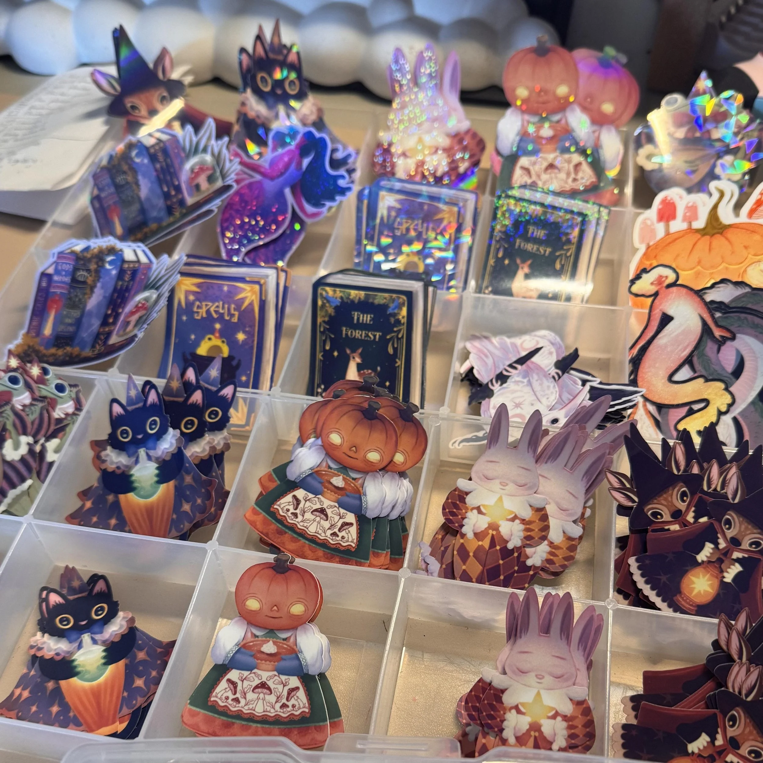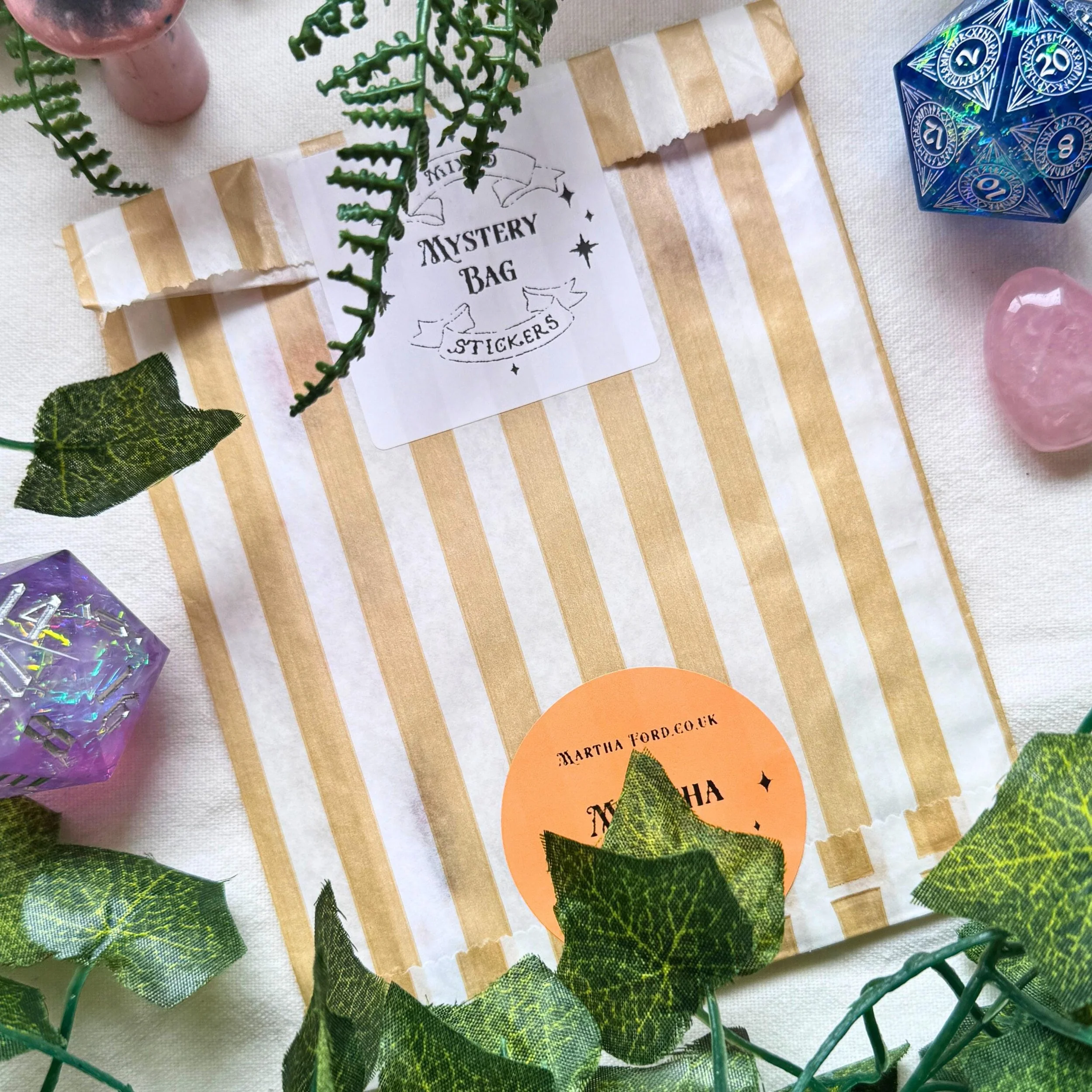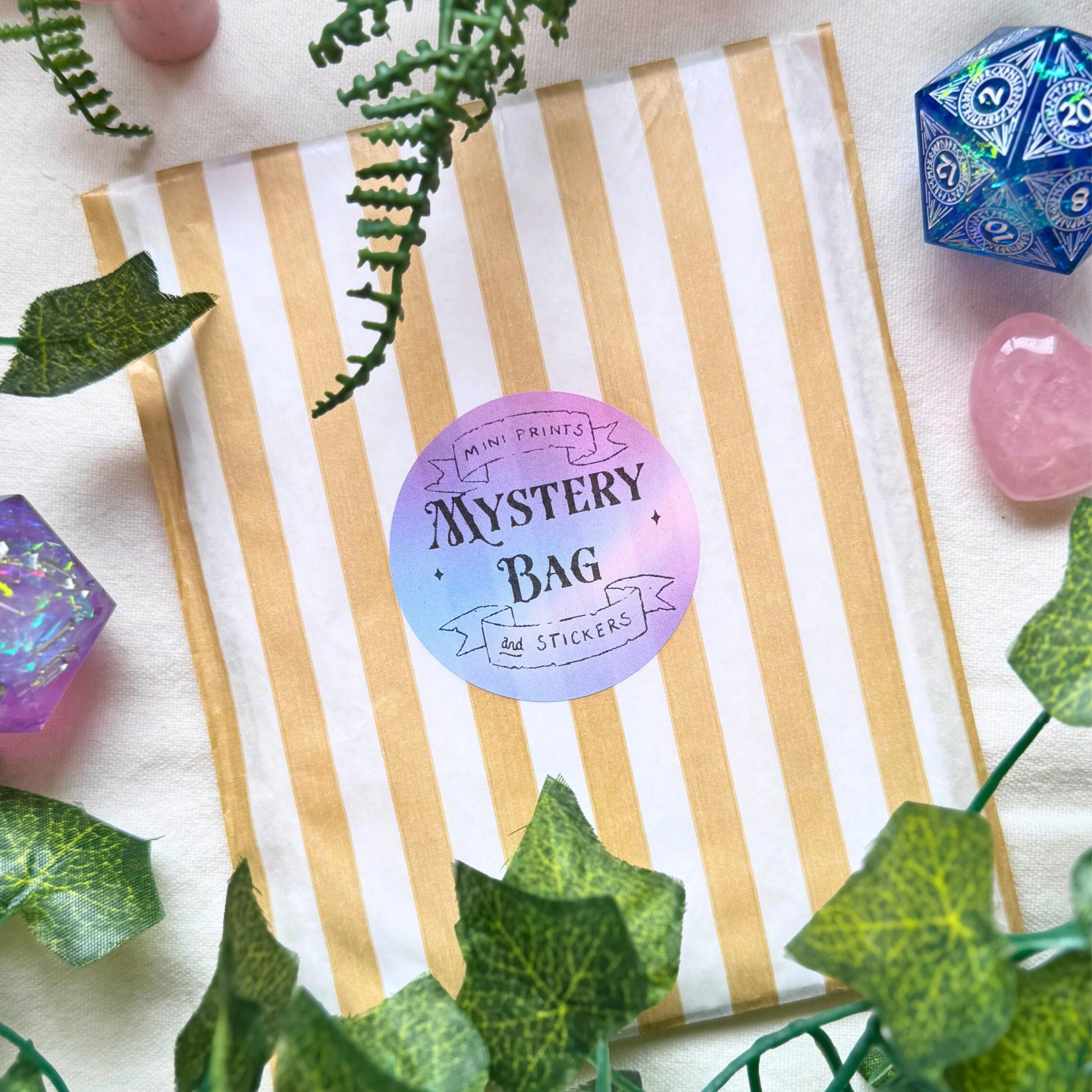 Mystery bag of illustrated vinyl stickers and postcards, chance and collect, handmade, homemade